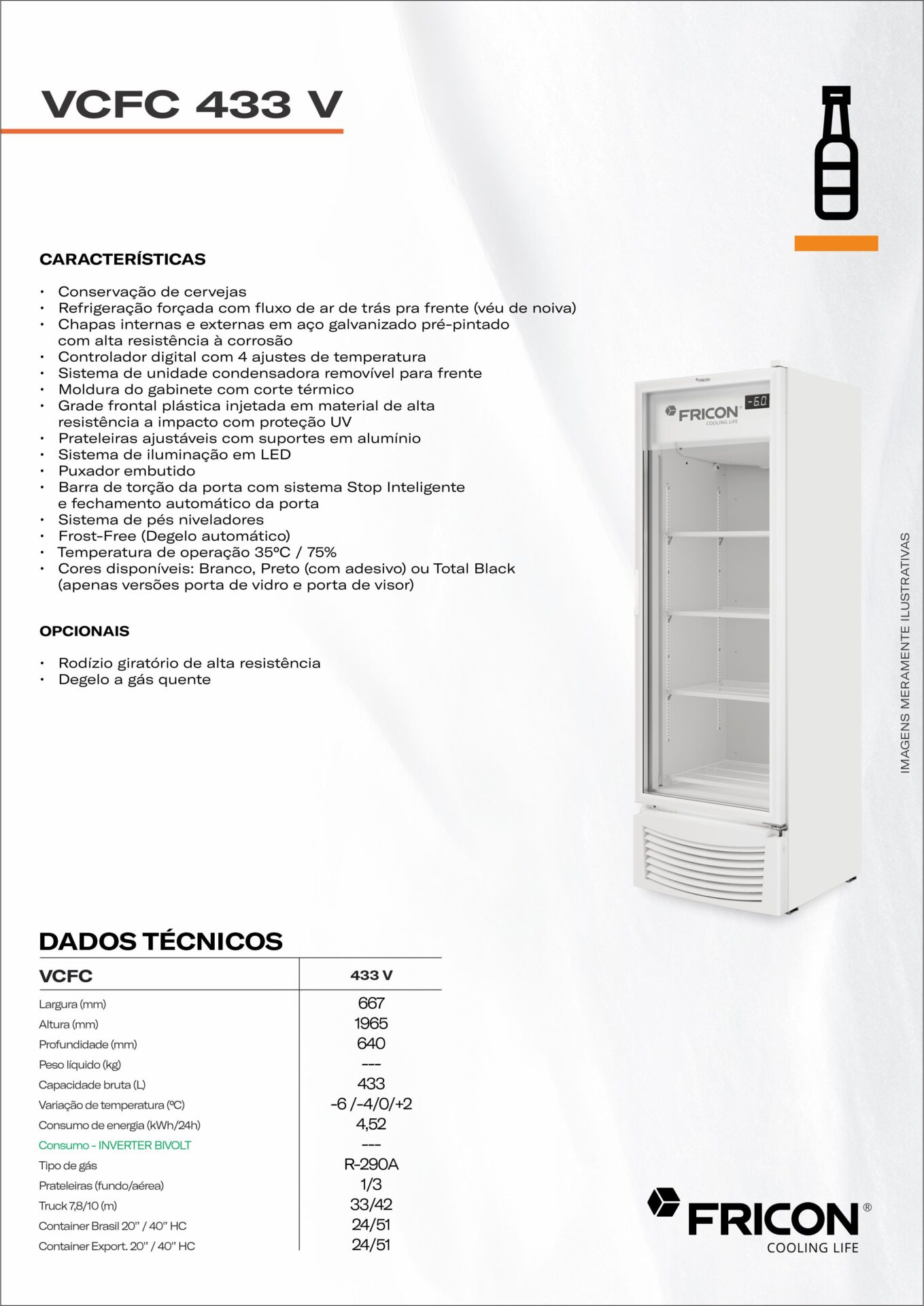 Refrigeração forçada com fluxo de ar de trás para frente, gelando mais rápido as bebidas da frente (Véu de Noiva)